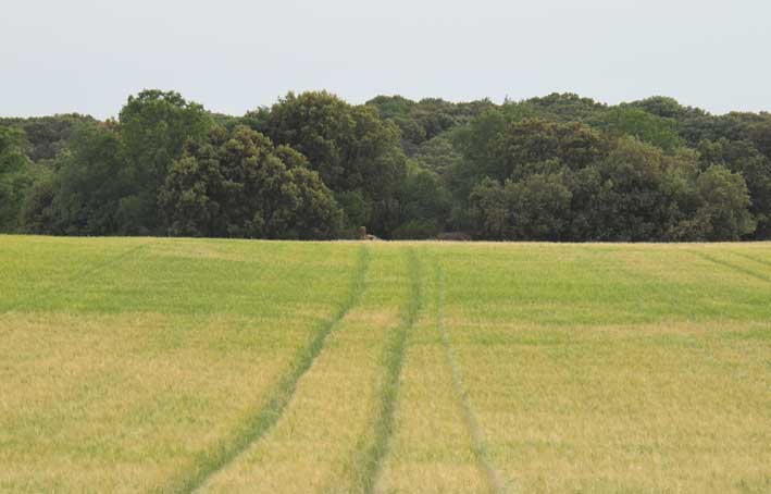 El trigo amarillea en el páramo entre brotes de encinas y robles.