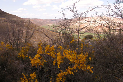 | Son las aliagas, todas las cuestas están repletas de ellas, y el valle toma un color amarillento, son las primeras flores y las más duras. Es un halo que rodea al valle, y que anuncia que pronto vendrá la primavera. (Dentro de paisaje-botánica, cuestas, te hablamos más de esta planta) | ||