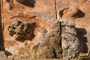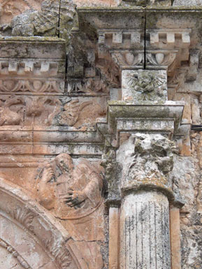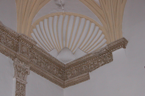 | Los bordes del recinto presentan cenefas y frisos de estuco en relieve con prolija decoración plateresca de releos y grutescos | ![]() |